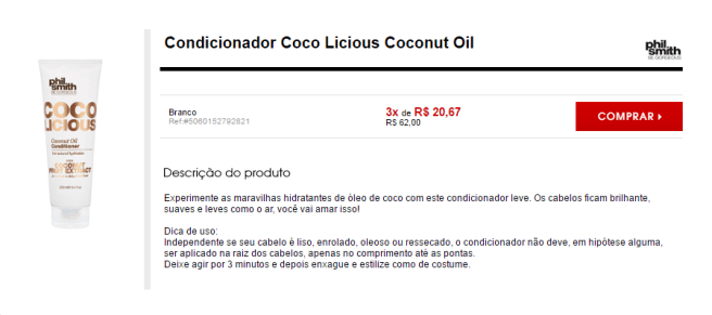 A linha Coco Licious de Phil Smith traz em sua fórmula extrato de óleo de coco, que promove uma limpeza suave e nutritiva, deixando os cabelos macios, cheios de brilho e com uma aparência tão leve quanto o ar.