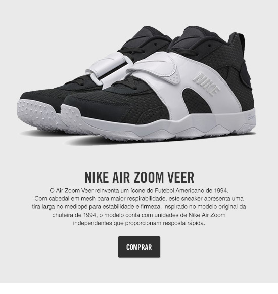 O Tênis Nike Air Zoom Veer Masculino reinventa um ícone do Futebol Americano de 1994. Oferecendo um cabedal em mesh para respirabilidade superior. Apresenta uma tira larga no mediopé para estabilidade e firmeza, inspirada no modelo original da chuteira de 1994. Conta ainda com unidades Nike Air Zoom independentes que proporcionam amortecimento de baixo perfil, com ótima resposta.