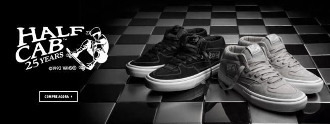 A Vans ouviu a sugestão de Caballero e o Half Cab® nasceu. Um ícone foi criado e inúmeras outras marcas de tênis lançaram suas próprias “homenagens” desse clássico original da Vans – que se tornou no tênis de skate assinado há mais tempo no mercado, sem nunca ter sido retirado das coleções da marca.