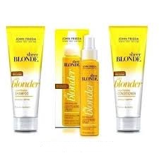 John Frieda é nada mais que o “Hair stylist” das celebridades internacionais. E esse trio fantástico da foto (shampoo e condicionador Go Blonder combinados com o Lightening Spray) possuem um composto com ativos cítricos e camomila, que são ativados com o calor para clarear e iluminar gradualmente os fios loiros, deixando-os naturalmente mais claros. Sua tecnologia combina polímeros fixadores e condicionadores que retém peróxido de hidrogênio, permitindo o controle do clareamento. Depois de lavar e condicionar os cabelos aplique o Lightening uniformemente no cabelo úmido. Para otimizar a iluminação dos fios, use prancha ou modelador após seca-los com secador. Quanto mais calor for usado, maior será o efeito do clareamento nos fios. Vão deixar seu look um arraso! Eu uso e aprovo!