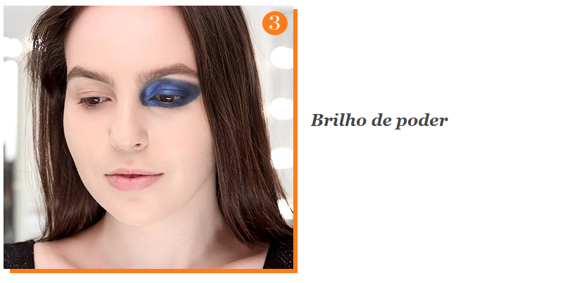 Para selar a sombra cremosa é preciso aplicar uma sombra em pó no mesmo tom do azul. Como o pigmento é mais cintilante, vamos aplicar na pálpebra móvel e na raiz nos cílios inferiores com pincel chatinho (para marcar beeeem).