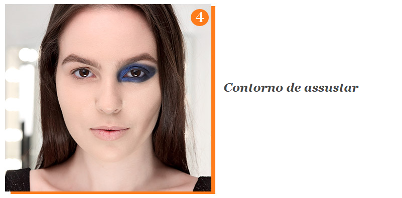 Agora é hora de criar a sensação de profundidade também no rosto: com uma sombra marrom, marque o contorno das maçãs de uma maneira mais acentuada (não esfume como costuma fazer na maquiagem para afinar o rosto, a ideia aqui é deixar artificial mesmo).