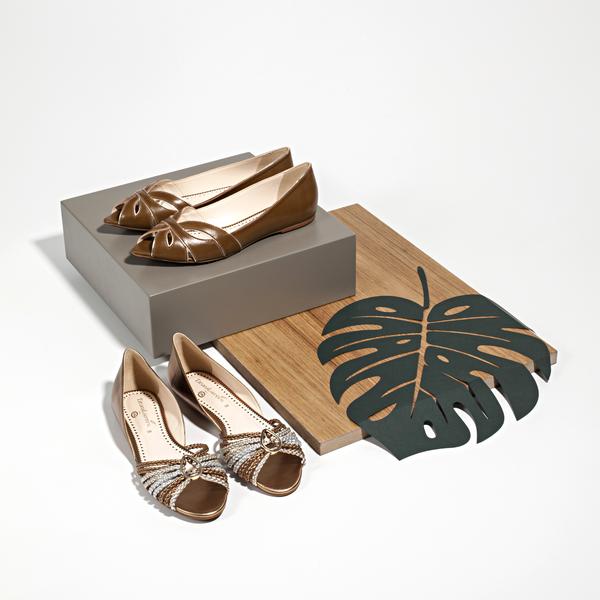 Vazados em forma de coração e tramas com fios dourados surgem em sapatos de ponta fina; tranças e fios de couro desenham flats. Os saltos são baixos e discretos, na medida perfeita para uma temporada pé no chão e alegre.