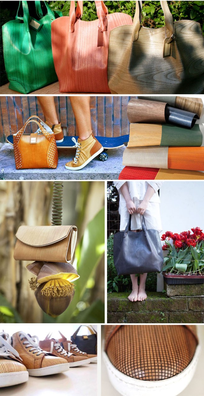 Os designers israelenses Tesler e Mendelovitch criam bolsas e móveis super modernos revestidos com folha de madeira flexível. A folha de madeira é colada sobre um tecido leve de algodão e depois cortado a lazer nos mais diversos desenhos para dar a flexibilidade desejada pelos designer para criar seus produtos.