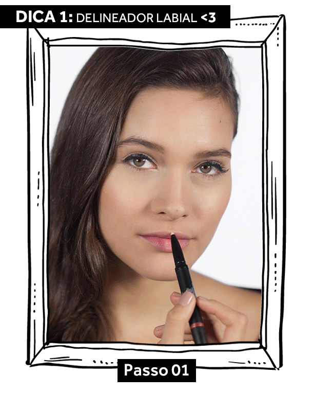 Já sabemos que aplicar um batom escuro de maneira perfeita não é tão fácil quanto parece. E nesses horas a gente conta com um aliado poderoso: o delineador labial, conhece? Novidade de Make B., o Duo Delineador Labial vem nas cores marrom, vermelho e rosa e define o contorno dos lábios sem marcar o traço. O produtinho mágico tem dois lados: um incolor e outro colorido. Enquanto o primeiro promove um tratamento que disfarça as linhas de expressão, o segundo realça o contorno com traços mais firmes e dá uma maior intensidade na cor.