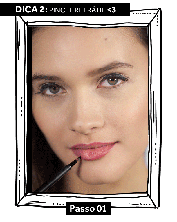 Passo 1: passe o pincel no batom e, depois, faça um delineado fino no contorno dos lábios.