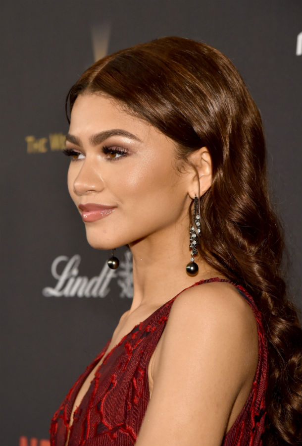 A cantora Zendaya harmoniza seus lábios nude com uma sobrancelha marcante e feições encantadoras.