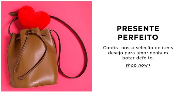 Não se preocupe, você ainda tem tempo de sobra para comprar o presente ideal para o dia dos namorados. Para te ajudar nessa tarefa, a AMARO preparou sugestões de roupas e acessórios femininos para você arrasar na escolha. Você encontrará diferentes opções de vestidos, casacos, e acessórios que sua namorada precisa ter. Produtos para todos os estilos e gostos para você conseguir acertar no presente. Para aquecer seu amor neste inverno, separamos diferentes opções de casacos para completar e atualizar o guarda-roupa. Casacos alongados e super quentes proporcionam looks sofisticados e a mantem aquecida em dias de baixa temperatura. Eleve o visual escolhendo casacos de pelo fake e surpreenda sua namorada com uma peça estilosa e poderosa. Acessórios femininos como bolsas e óculos de sol são incríveis presentes e ótima alternativa para este dia dos namorados. Óculos de sol espelhados são hit da temporada e fáceis de combinar com diferentes looks. Para completar o visual dela, opte por bolsa modelo saco, perfeita para usar no trabalho ou no fim de semana. Para presentes de linha fitness, temos ampla variedade de calças, blusas e tops, confeccionados em tecido resistentes para diferentes práticas esportivas. Monte look de academia completo para sua musa fitness, combinando calça legging e regata alongada para conforto durante os treinos. Shorts e t-shirts de modelagem solta ao corpo são produtos que também compõem a categoria fitness e que oferecem looks rápidos e fáceis para ela usar em caminhadas ou corridas ao ar livre. Ainda na dúvida do que comprar neste dia dos namorados? A AMARO já pensou em tudo e te ajudará a encontrar o presente perfeito para sua namorada. Além de ótimos produtos, a AMARO oferece linda embalagem de presente e entrega rápida para todo o Brasil. Confira seleção de roupas e acessórios femininos e adquira o melhor presente nesta data tão especial.