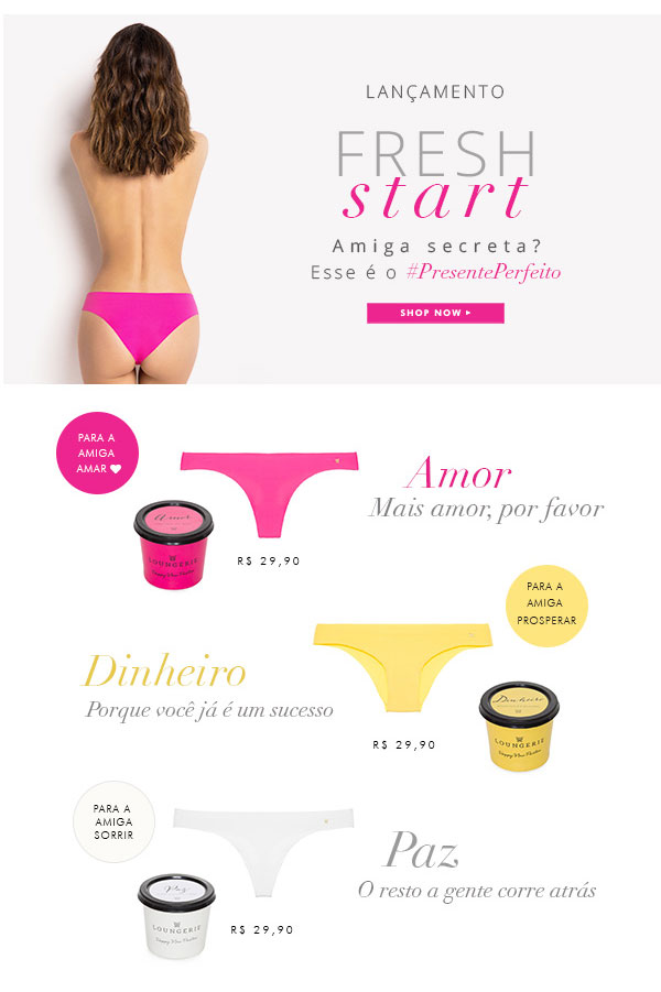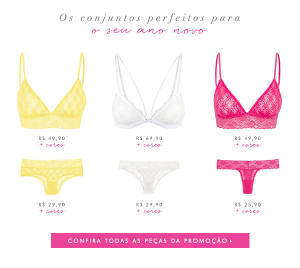 Para quem gosta da superstição, as calcinhas de final de ano que chegam às lojas em três cores diferentes: amarela (dinheiro), branca (paz) e rosa (amor).